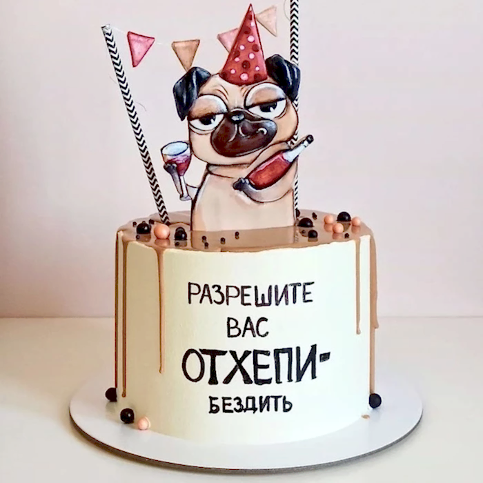 Торт без мастики, покрытый Pin-Up Украшен топпером, монпарелью, подтеками и надписью
