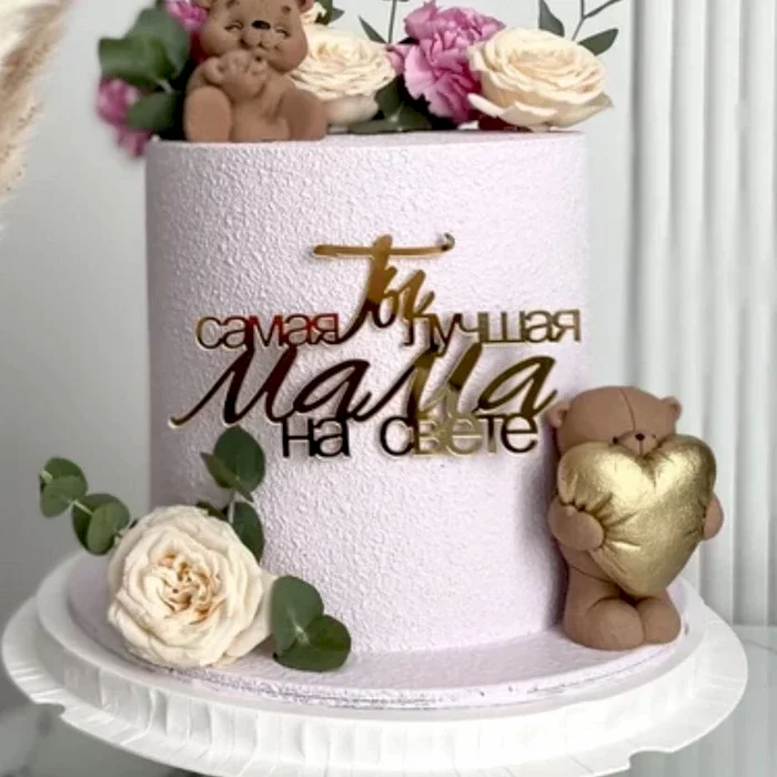 Торт для мамы, покрытый велюром. Украшен мишками и Pin-Up цветами. Топпер Толе би, 19 заменить