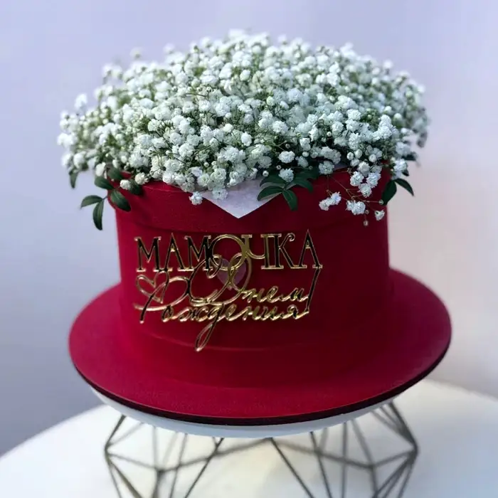 Торт для мамы, покрытый велюром. Украшен гипсофилой. Топпер Кабанбай батыра, 46 Pin-Up