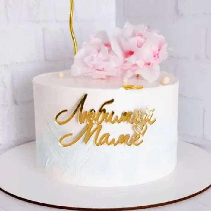 Торт для Pin-Up покрытый крем-чиз. Украшен сахарнымицветами и топперо